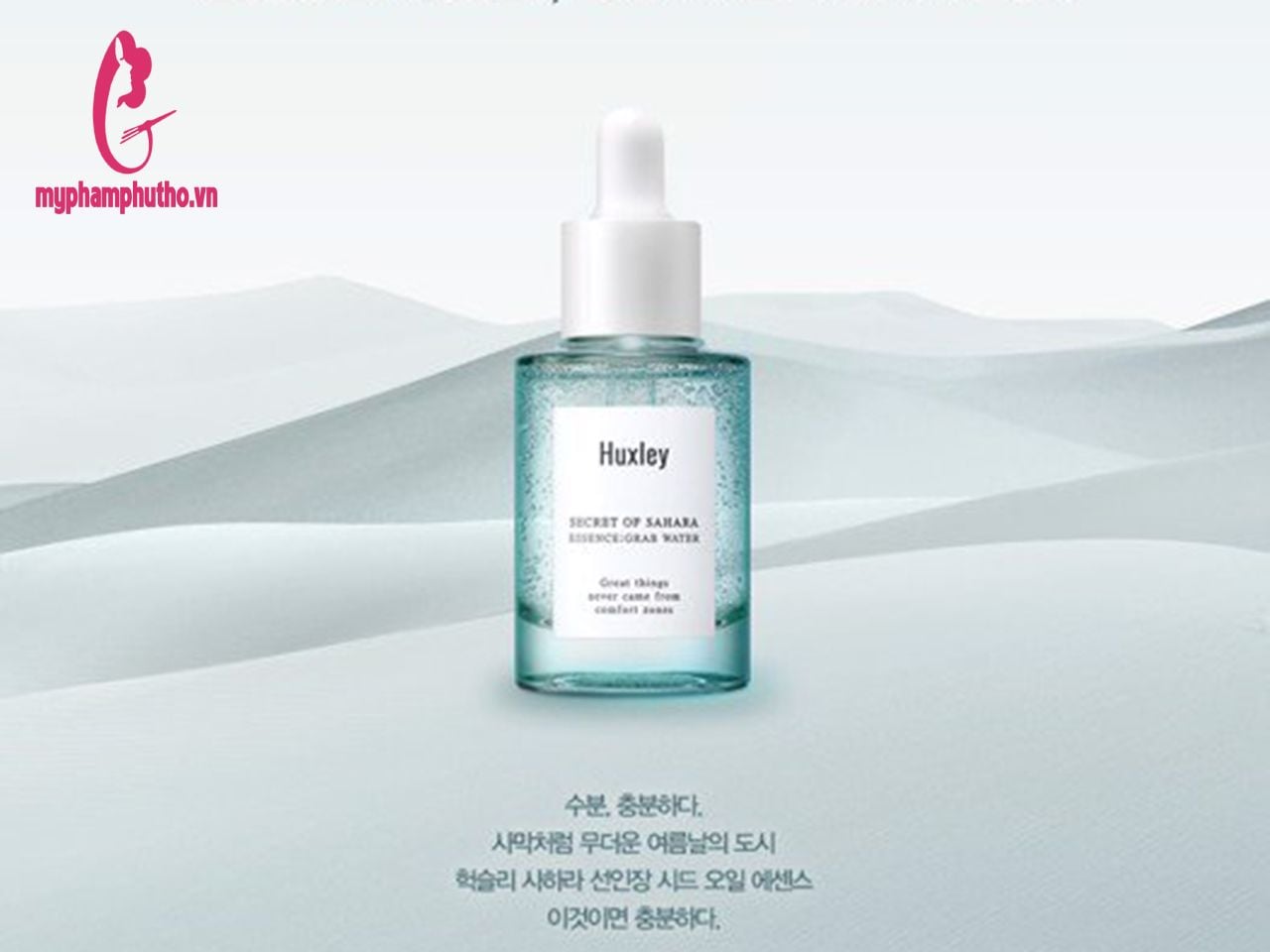 - Tinh chất Huxley Essence Grap Water đòng thời cũng giúp cung cấp độ ẩm dồi dào, giữ ẩm, làm mát và làm dịu da, chống lại oxy hóa và kiểm soát bã nhờn với chiết xuất từ dầu hat xương rồng được chứng nhận của ECOCERT.