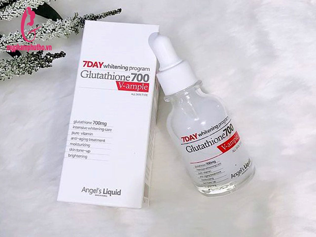 - Huyết thanh 7 day whitening program glutathione 700 v-ample được điều chế để giúp phục hồi làn da xỉn màu, làn da có vấn đề về sắc tố thông qua tác động đến Melamin từ Glutathione.