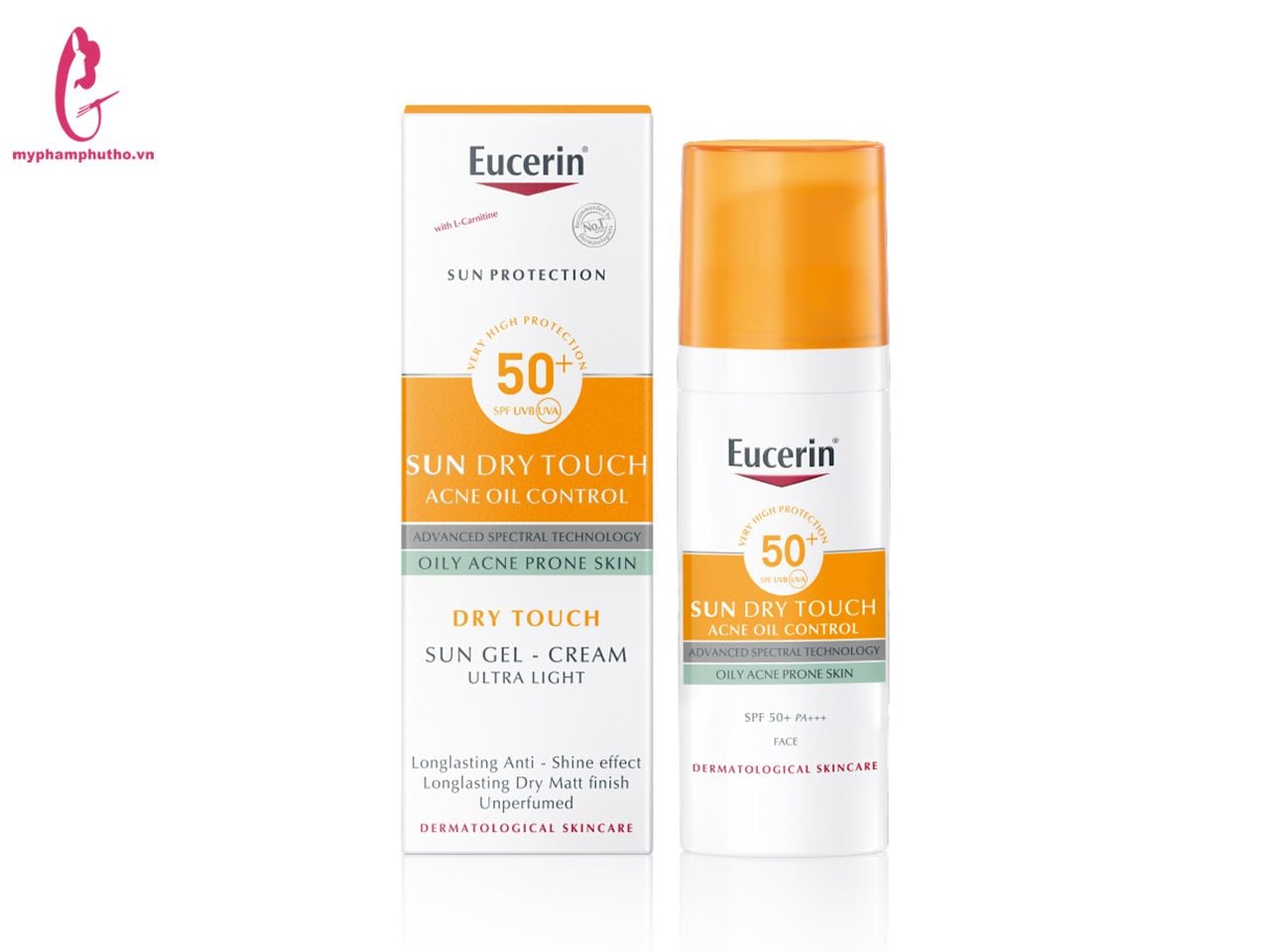 - Eucerin chính là thương hiệu dược mỹ phẩm được các chuyên gia và bác sĩ da liễu khuyên dùng, đặc biệt đối với những làn da trong quá trình điều trị mụn. Kem chống nắng cho da dầu mụn Eucerin Sun Gel-Cream Dry Touch Oil Control SPF50+ là sản phẩm chống nắng dành cho mọi loại da, đặc biệt là da dầu mụn mà không gây kích ứng.