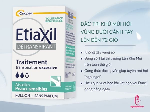 - ETIAXIL là một thương hiệu đến từ Pháp và là một trong những nhãn hàng chuyên sản xuất các dòng sản phẩm khử mùi, chăm sóc cơ thể được rất nhiều người tin dùng. Không chỉ có khả năng ngăn mùi và mồ hôi hiệu quả, lăn khử mùi etiaxil màu xanh còn không làm ố vàng trên áo, cùng khả năng lưu hương lâu và khá tiết kiệm khi dùng.