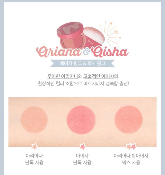 - Má hồng 2 màu I'm Meme I'm Blusher Best Friend là một trong những phụ kiện làm đẹp không thể thiếu trong tủ đồ makeup của tất cả các chị em. Được xuất xứ tại Hàn Quốc, nơi được xem như là bắt nguồn của các xu hướng làm đẹp, đặc biệt là phong cách makeup của các cô gái Hàn luôn luôn được lên top thịnh hành bởi sự trong trẻo, nhẹ nhàng nhưng cũng không kém phần quyến rũ và cuốn hút.