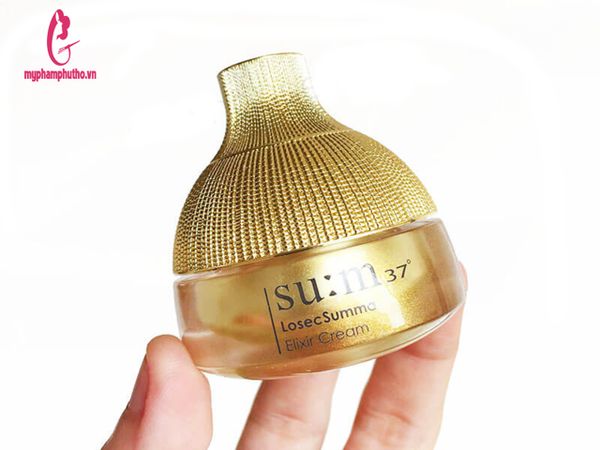- Kem dưỡng da Su:m37° Losec Summa Elixir Cream có chứa hàm lượng dinh dưỡng cao thu được từ quá trình lên men tự nhiên của 10 loài cây bằng cách sử dụng phương pháp lên men của các đế quốc La Mã. Kem dưỡng có kết cấu texture dai, mềm nhưng dễ thấm, hình thành lớp màng bảo vệ giúp khóa ẩm và duy trì làn da sáng và mềm mịn hơn.