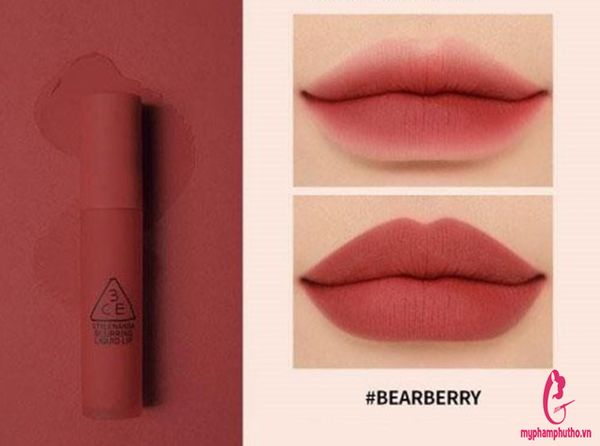 - Không sở hữu son 3CE Bearberry thật là có lỗi với bờ môi của bản thân. Cây son hồng nâu mận cực phẩm quyến rũ làm tôn bật dáng môi yêu kiều, ghi điểm bởi chất son kem lì mịn mướt. Đây là một nhân tố mới đến từ dòng 3CE Blurring Liquid Lip hot hit thời gian qua. Hồng nâu mận, hẳn nhiều nàng sẽ cảm thấy lo lắng đây là một màu son khó tính. Son 3CE Bearberry đặc biệt khi ngả trầm nhưng lại không đậm, đỏ hồng nhưng pha nâu nên rất sành điệu chứ không bị bánh bèo một chút nào cả! Nếu như muốn trở nên sành mốt, cá tính và khác biệt hơn nhưng vẫn xinh đẹp và lộng lẫy, thì hãy chọn 3CE Bearberry để đồng hành.