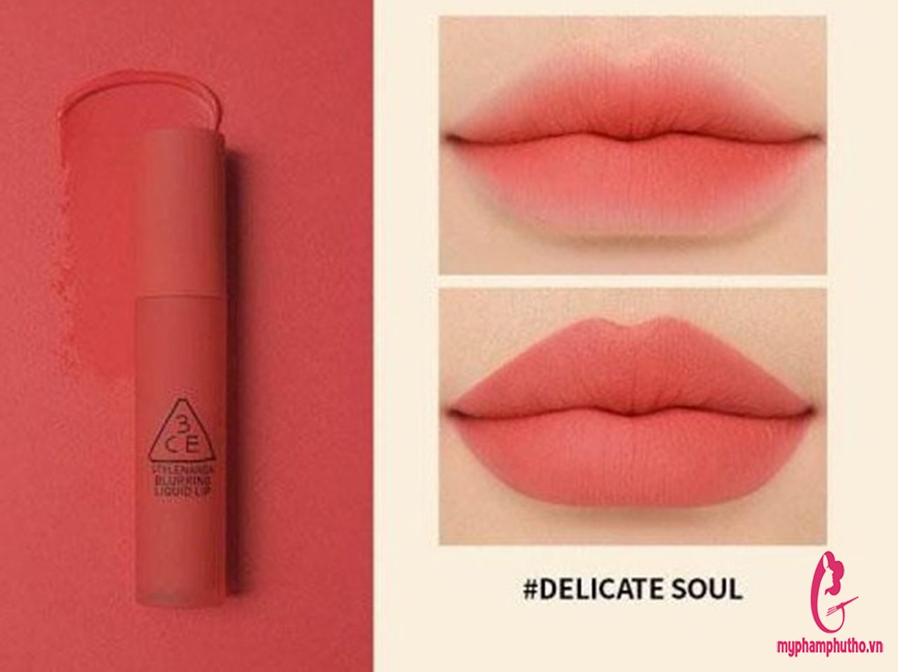 - Còn gì đẹp hơn son 3CE Delicate Soul hồng san hô từ bộ sưu tập Blurring Liquid Lip? Cái tên này đã nói lên được phần nào đặc điểm của màu 3CE Delicate Soul. Một sắc hồng san hô như chạm đến trúng tâm hồn mong manh của các cô nàng. Hồng tinh tế, hồng xuyến xao cùng với chút ánh cam nhẹ nhàng. Nếu như đã trót mê style thuần khiết chuẩn Hàn thì hãy sắm ngay son 3CE màu Delicate Soul để hoàn thiện nhan sắc nhé. Son tôn da nhưng vẫn hợp với một chút makeup thay vì các nàng để mặt mộc.