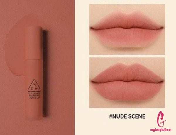 - Trong dòng son Blurring Liquid Lip thì 3CE Nude Scene chính là sắc độ nhẹ nhàng nhất. Hồng ngả nude lên môi rất tự nhiên chân thật và điểm thu hút của màu son này chính là nằm ở sự nhạt nhòa ấy. Nếu muốn dùng son hồng kiểu này đẹp, nhất nhất phải chú ý makeup. Bờ môi cực Tây sẽ trở thành nơi mà người đối diện phải lạc lối khi nhìn. Son 3CE Nude Scene ấn định với vẻ đẹp cực Tây và thu hút cho nàng.