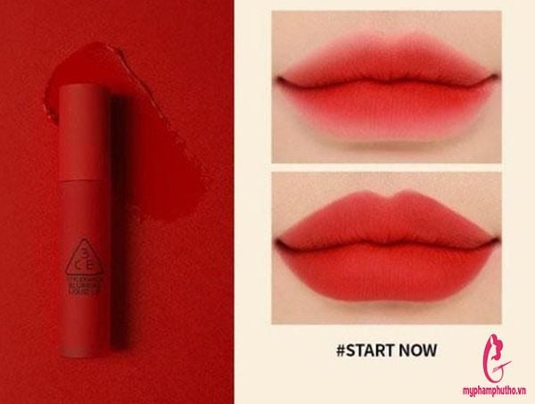 - Tìm kiếm màu son nịnh da, dễ dùng và sử dụng được cho cả mặt mộc thì đó chính là son 3CE Start Now. Bỏ túi cây son siêu sang dòng 3CE Blurring Liquid Lip mới này là lsự ựa chọn sáng suốt nhất mà nàng nên cân nhắc. Con gái ai mà chẳng mê son đỏ. Thiếu đi một sắc đỏ tươi trong tủ son quả thực là một điều không thể được. Son 3CE màu Start Now là minh chứng cho sức hút của một sắc đỏ tươi là sẽ không bao giờ kết thúc. Son rạng ngời, lên đôi môi mọng đẹp dù thoa full hay lòng môi. Màu này tôn da đáng kể, ngăm hay trắng dùng cũng đều rất xinh xắn cả.