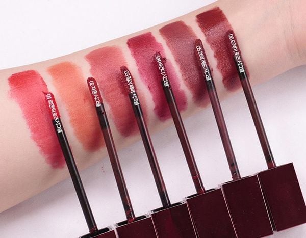 - Bảng màu Son Kem lì 24 Giờ PhyToTree Twenty Four Hour Velvet Tint với 6 màu sắc từ nhẹ nhàng cho đến cá tính chắc chắn sẽ làm hài lòng tất cả các nàng, dù theo style makeup hay có tone da nào thì cũng sẽ tìm được một sắc son phù hợp cho mình.