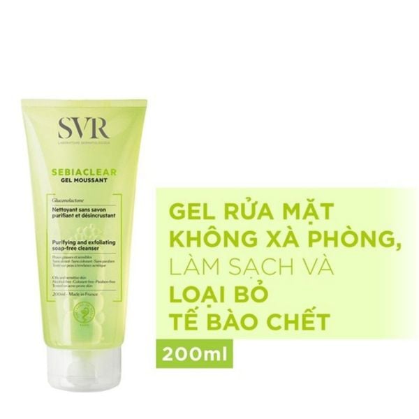 Sữa Rửa Mặt Dạng Gel Dành Cho Da Dầu SVR Sebiaclear Gel Moussant là sữa rửa mặt thuộc thương hiệu dược mỹ phẩm SVR đến từ Pháp với công thức vô cùng dịu nhẹ không chứa thành phần xà phòng đặc biệt phù hợp với làn da dầu mụn và làn da nhạy cảm. Sản phẩm có tác dụng làm sạch, làm sạch tế bào da chết và dầu nhờn trong lỗ chân lông giúp ngăn ngừa tối đa mụn ẩn và mụn đậu đen hiệu quả