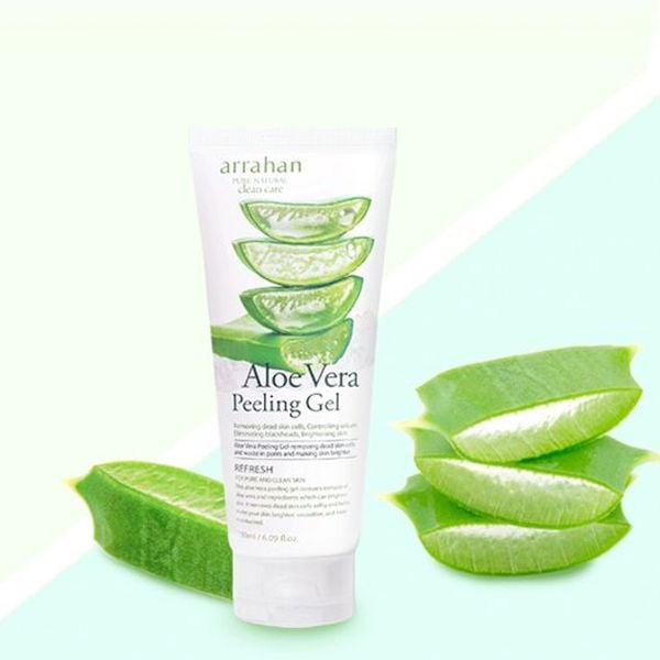 - Tẩy tế bào chết Arrahan Aloe Vera Peeling với công thức dạng Gel dịu nhẹ, giúp lấy đi các tế bào da chết mà không làm đau hay trầy xước da khi sử dụng. Sản phẩm chứa thành phần lành tính chiết xuất từ thiên nhiên, phù hợp mọi loại da, dùng được cho mặt và toàn thân.