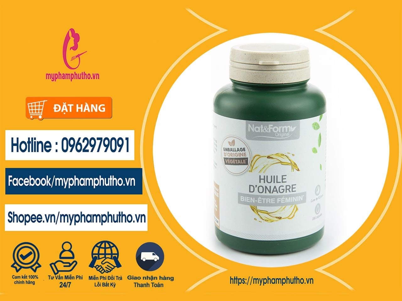 - Mỹ Phẩm Phú Thọ là đơn vị bán viên uống nội tiết hoa anh thảo hữu cơ Nat & Form Huile D’Onagre của Pháp, được nhập trực tiếp về Việt Nam. Chúng tôi cam kết bán hàng chính hãng, chính hãng đền tiền gấp 300% nếu quý khách hàng phát hiện hàng giả, nhái, hàng kém chất lượng.